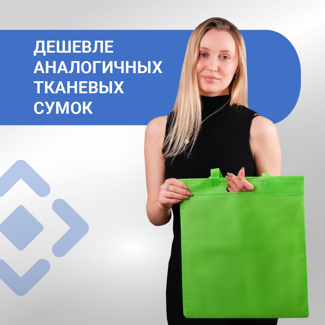 Многоразовый шоппер из нетканого материала с надежными пришивными ручками. Сумка из спанбонда приятная на ощупь, легкая и компактная.